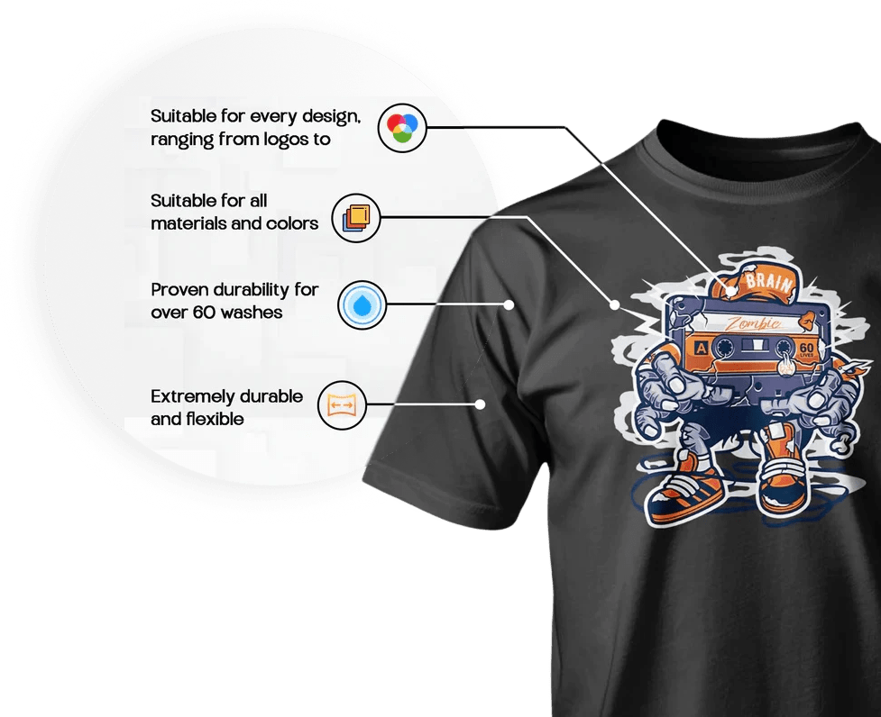 Apply your DTF transfer with a heat press set to the recommended temperature and pressure, ensuring even coverage for vibrant, crisp, and durable prints.